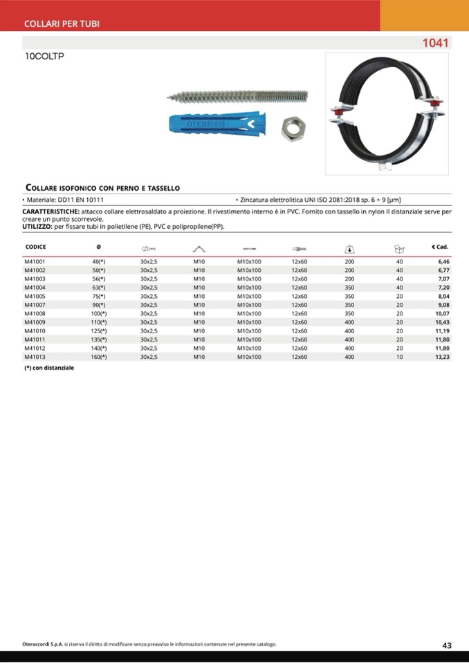 COLLARE ISOFONICO CON PERNO E TASSELLO