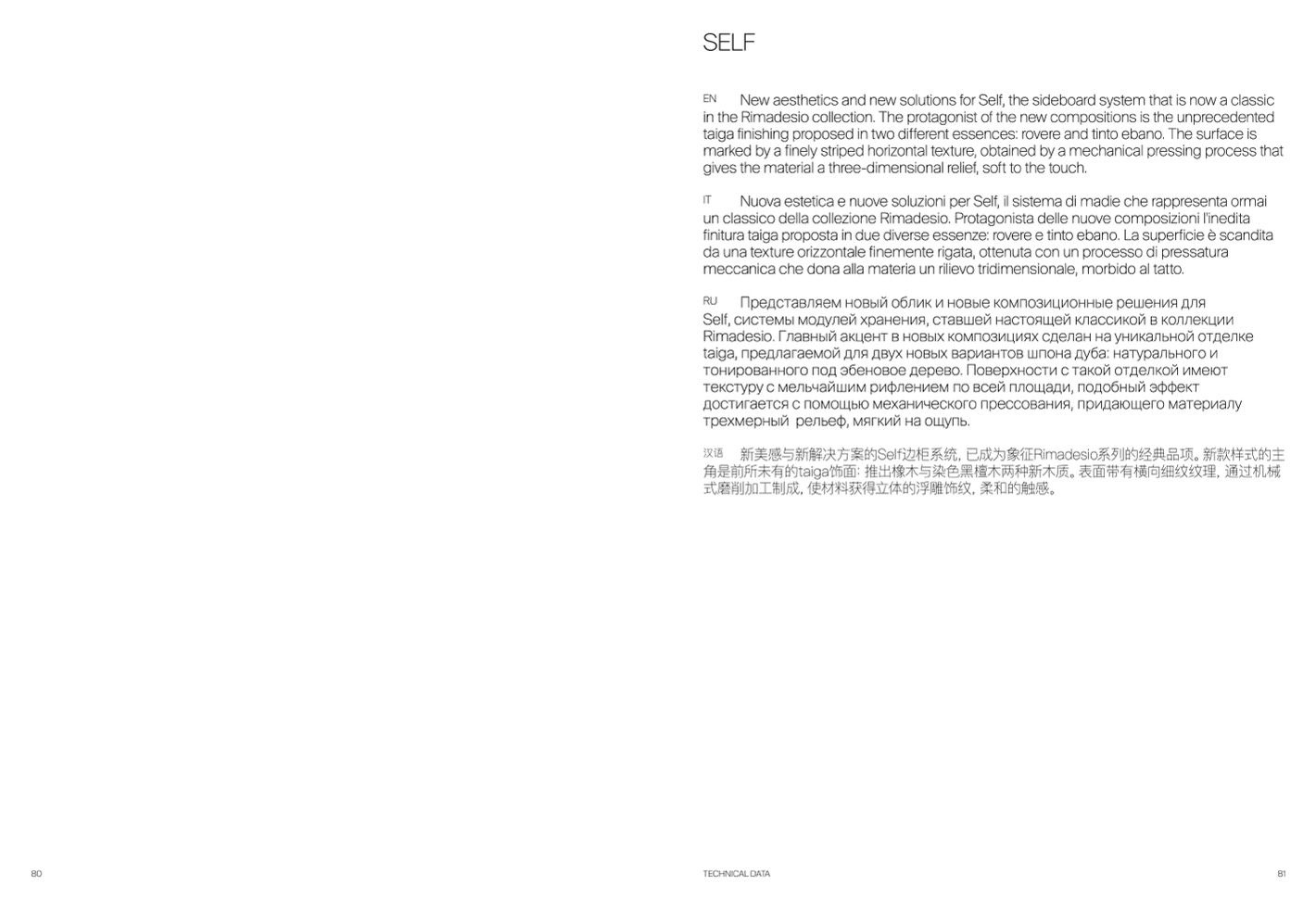 角是前所未有的taiga饰面:推出橡木与染色黑檀木两种新木质。表面带有横向细纹纹理,通过机械