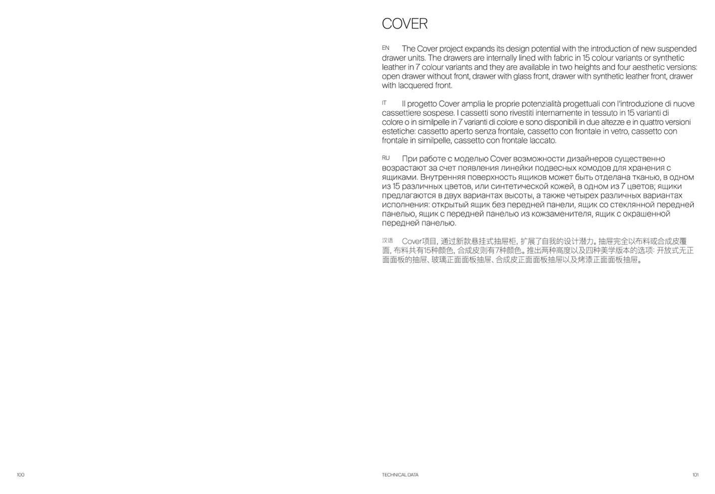 Cover项目,通过新款悬挂式抽屉柜,扩展了自我的设计潜力。抽屉完全以布料或合成皮覆