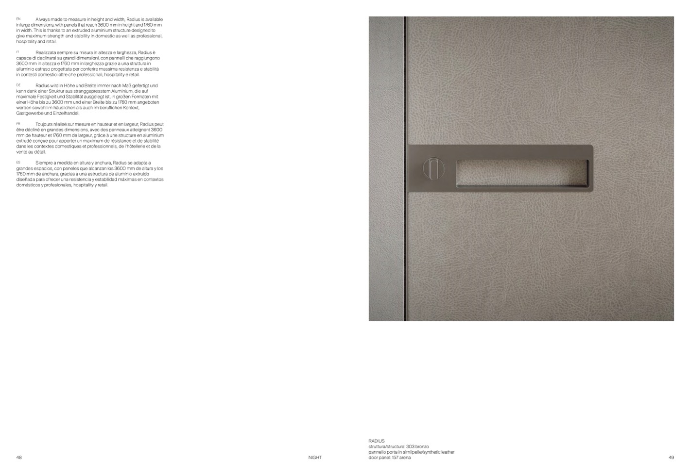 in large dimensions, with panels that reach 3600 mm in height and 1760 mm