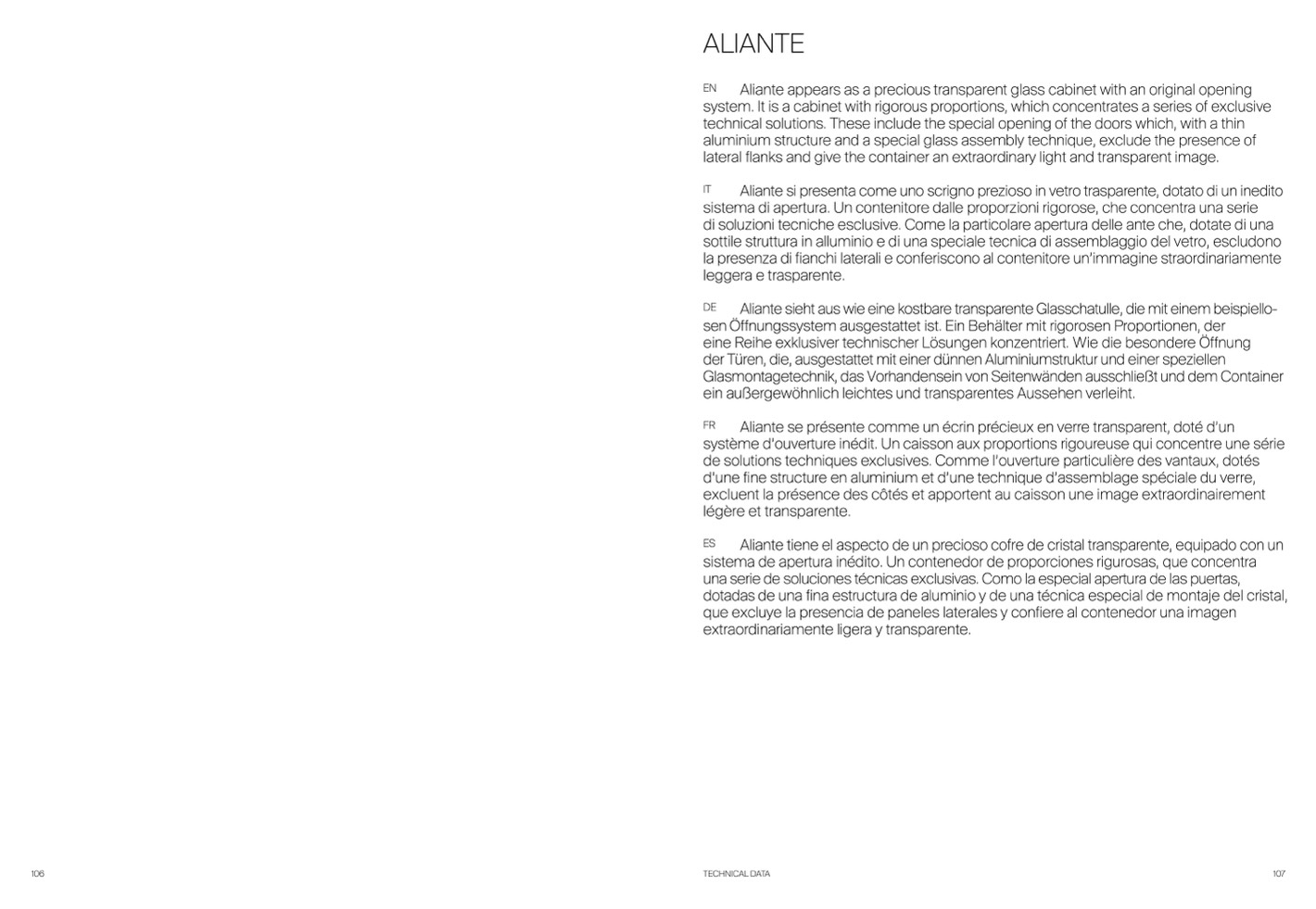 Aliante si presenta come uno scrigno prezioso in vetro trasparente, dotato di un inedito