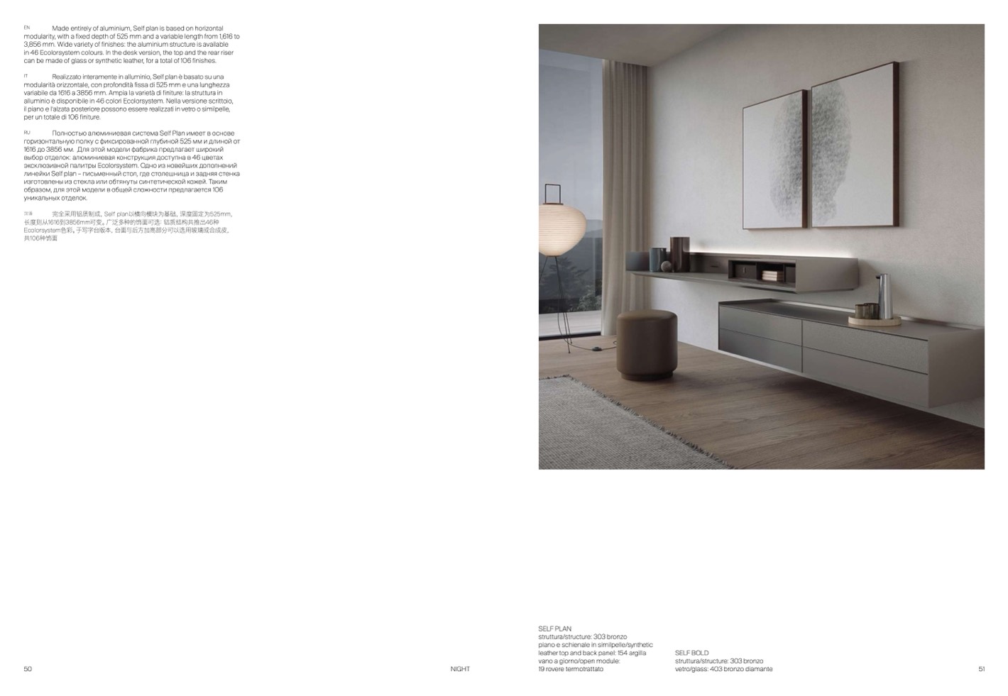 完全采用铝质制成,Self plan以横向模块为基础,深度固定为525mm,