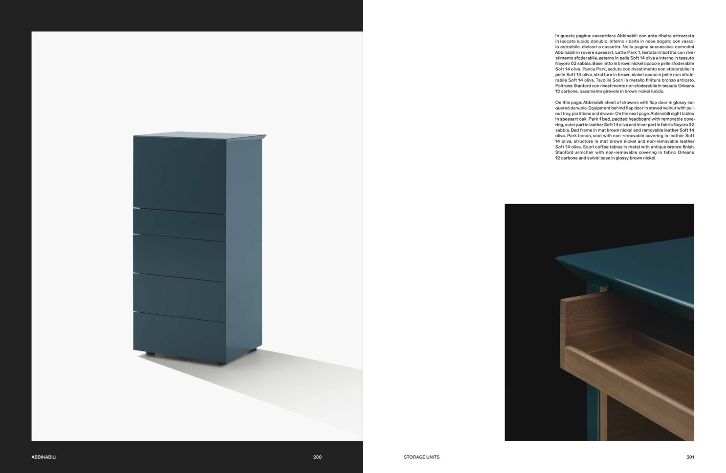 out tray, partitions and drawer. On the next page: Abbinabili night tables