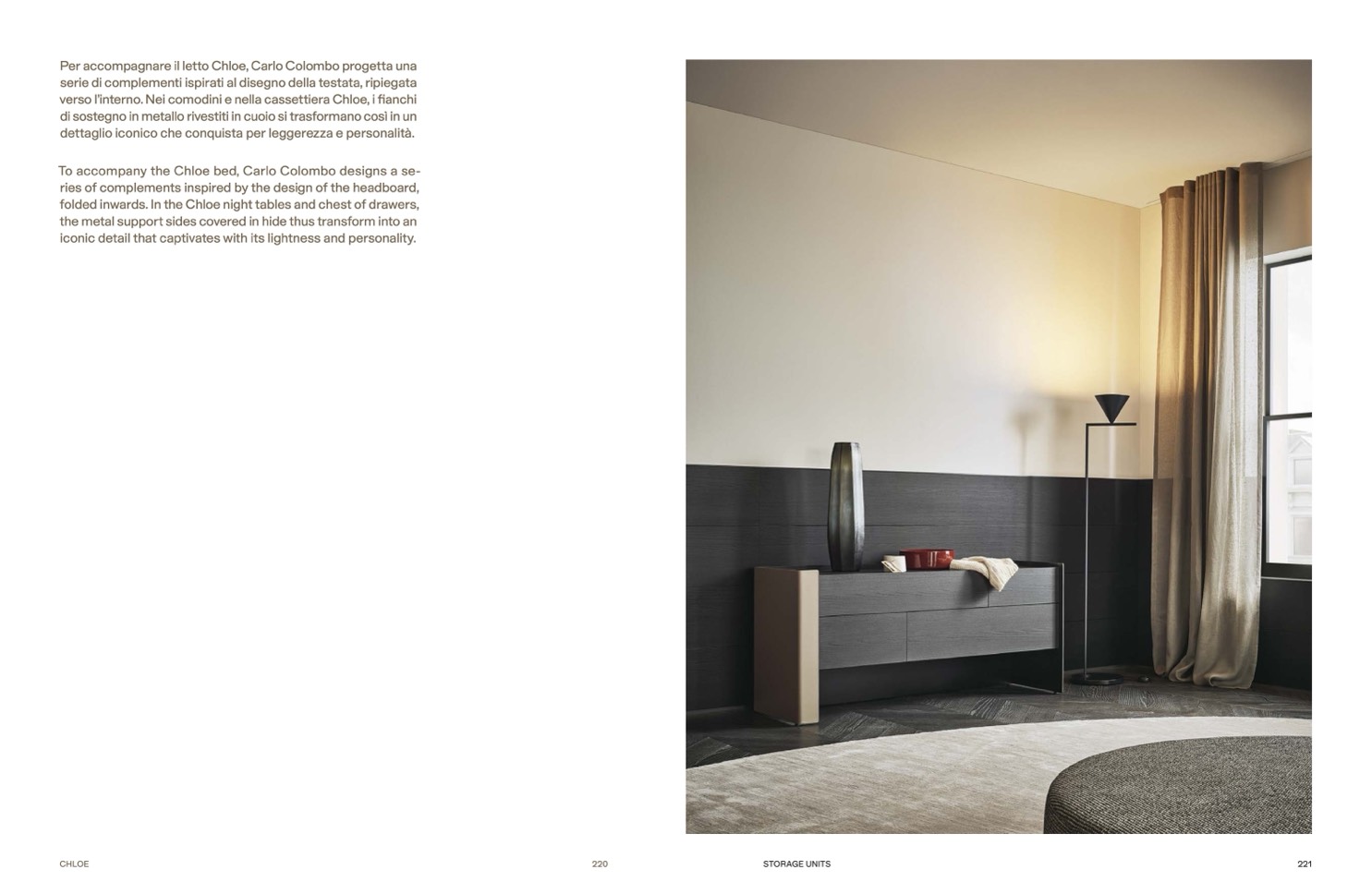 To accompany the Chloe bed, Carlo Colombo designs a se-