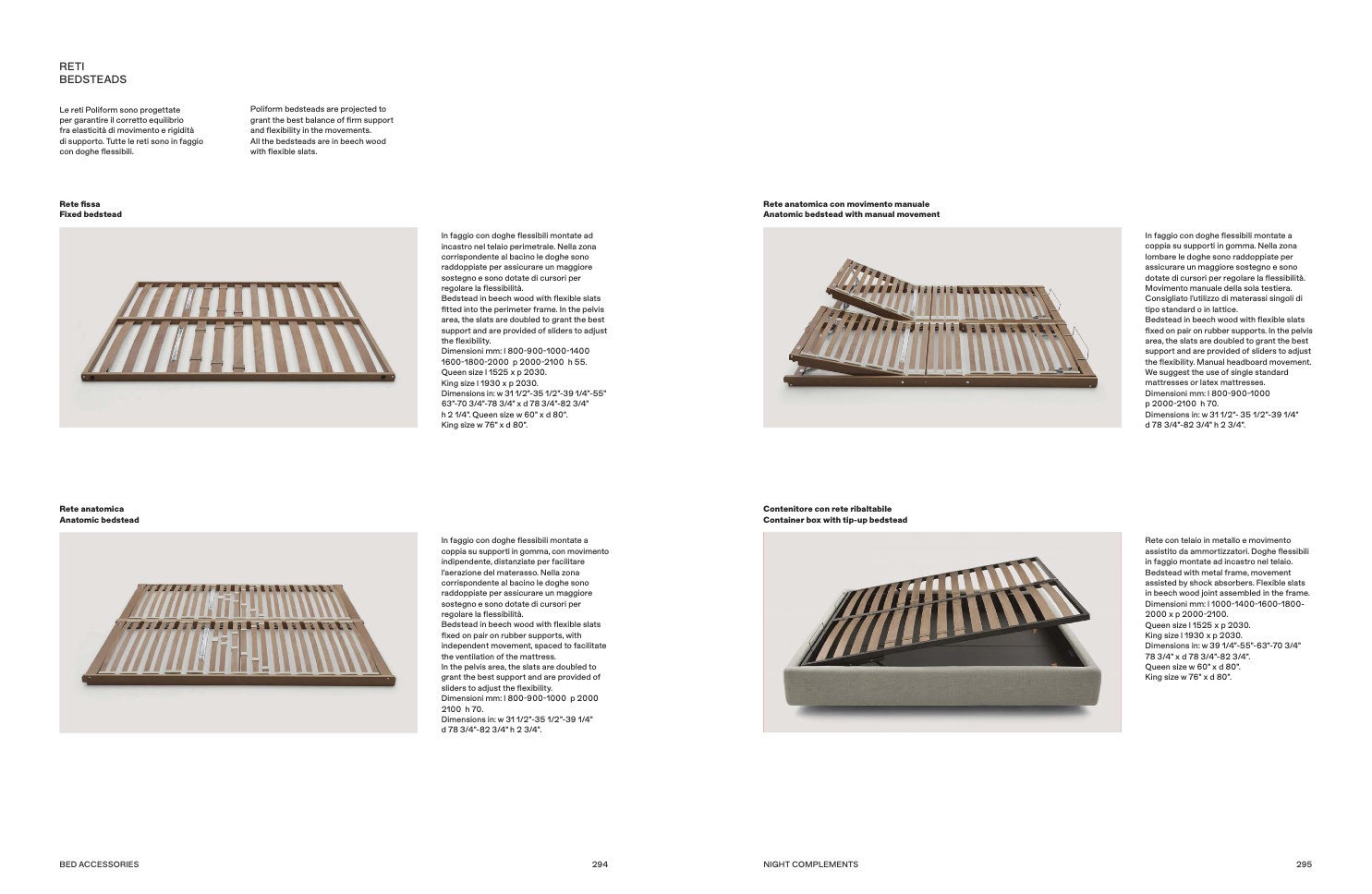 di supporto. Tutte le reti sono in faggio