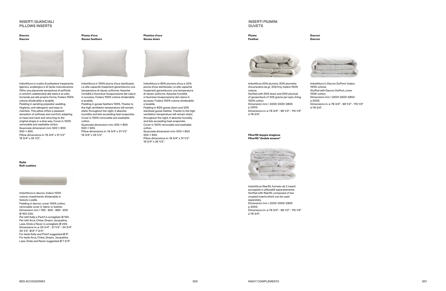Imbottitura in 100% piuma d’oca sterilizzata.