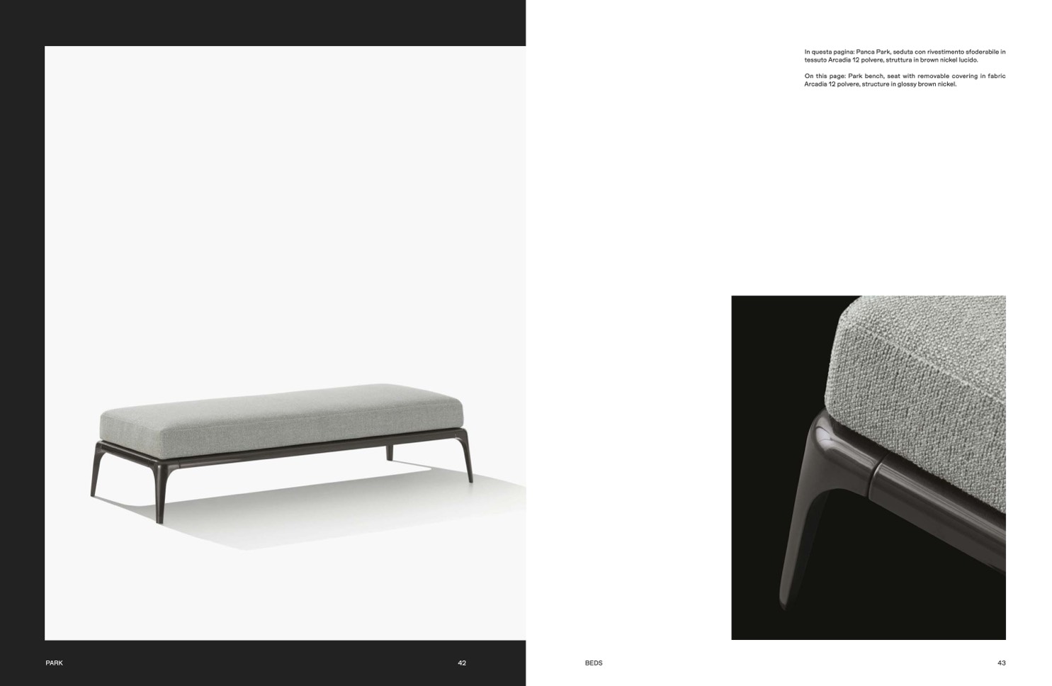In questa pagina: Panca Park, seduta con rivestimento sfoderabile in