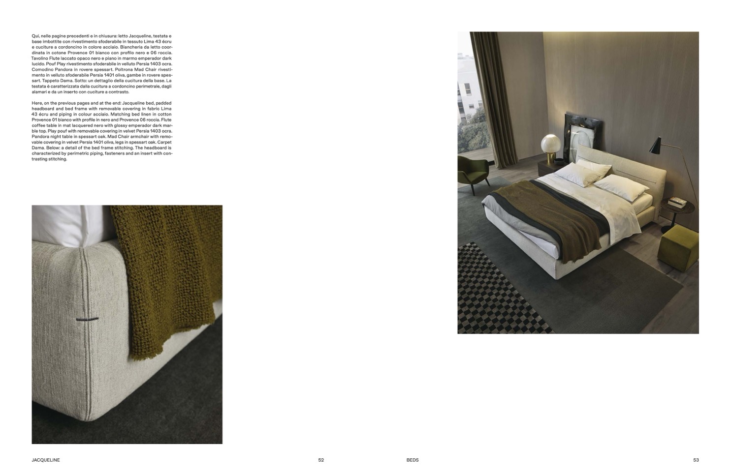 Qui, nelle pagine precedenti e in chiusura: letto Jacqueline, testata e