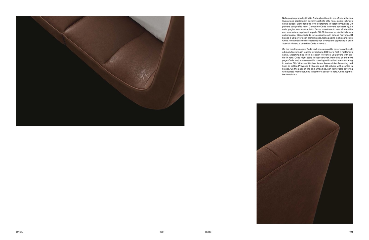 On the previous pages: Onda bed, non-removable covering with quilt-