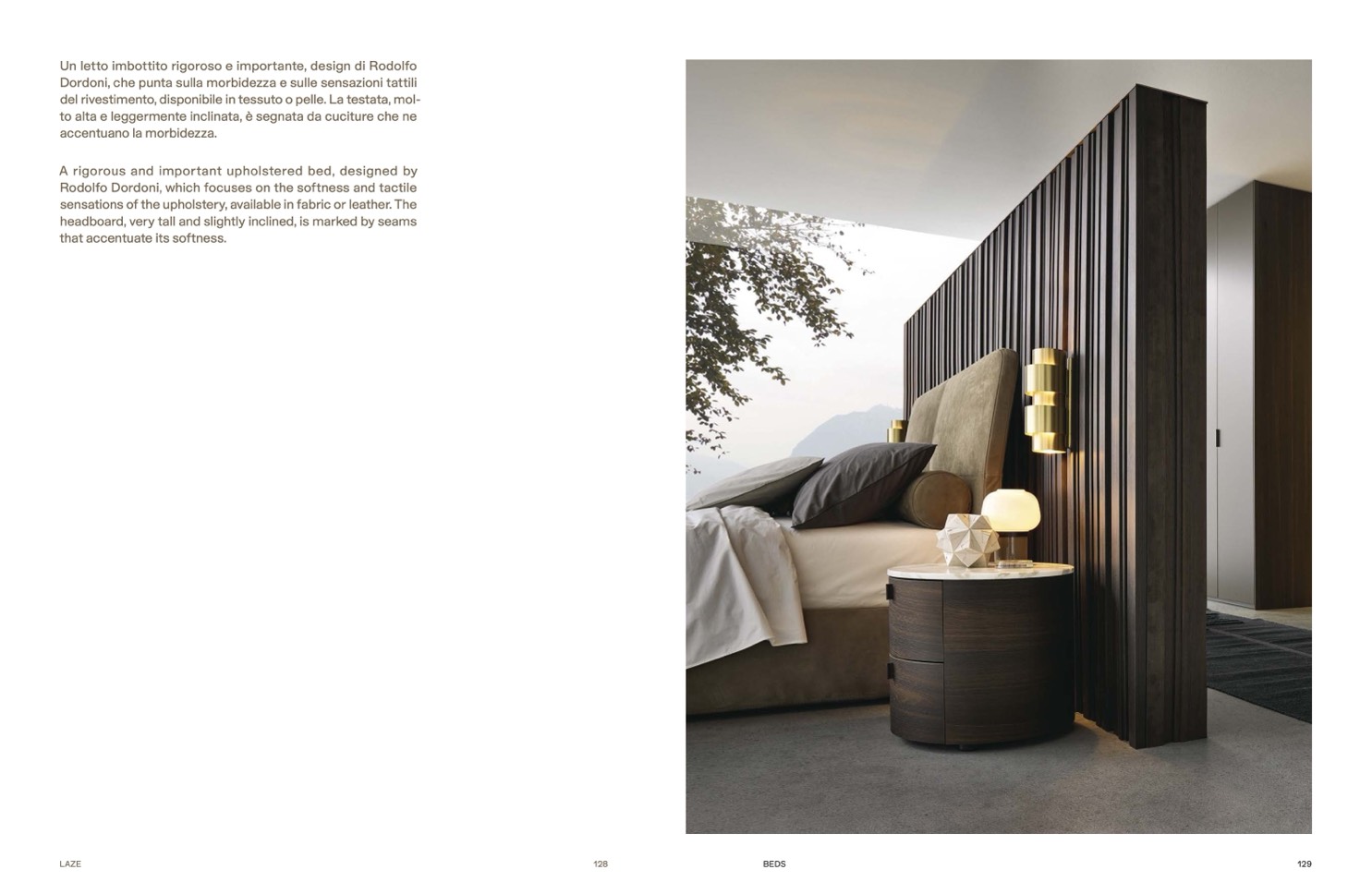 Un letto imbottito rigoroso e importante, design di Rodolfo