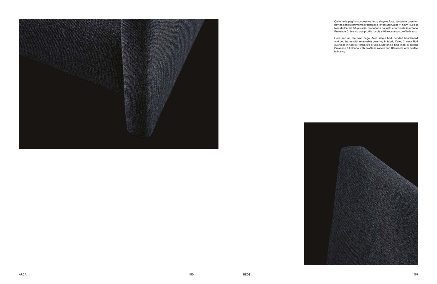 Qui e nella pagina successiva: letto singolo Arca, testata e base im-