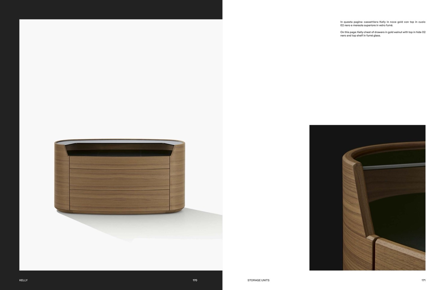 On this page: Kelly chest of drawers in gold walnut with top in hide 02