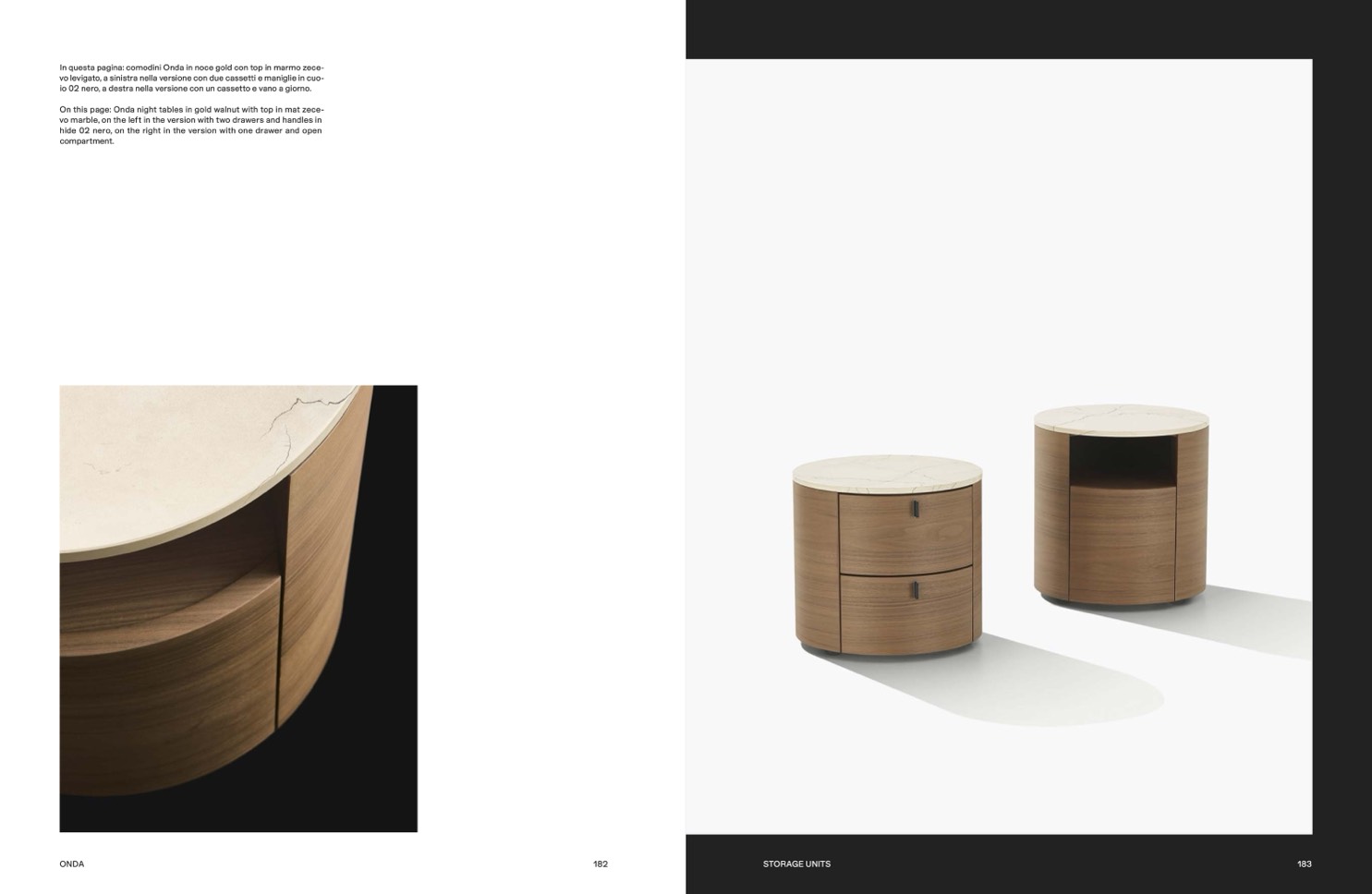 On this page: Onda night tables in gold walnut with top in mat zece-