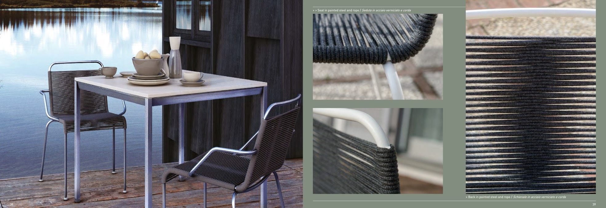 > > Seat in painted steel and rope / Seduta in acciaio verniciato e corda
