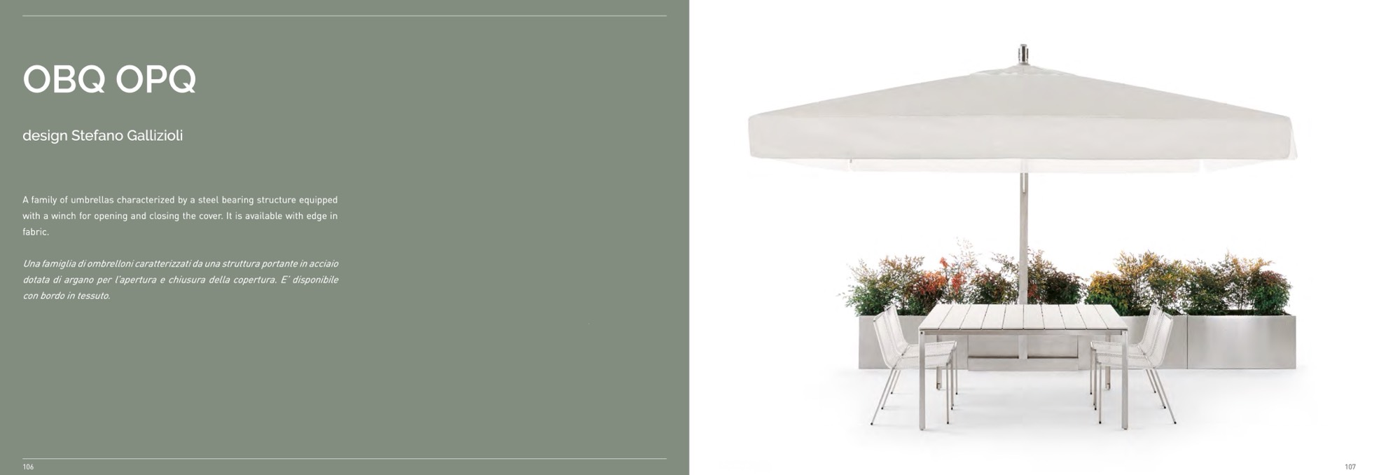 Una famiglia di ombrelloni caratterizzati da una struttura portante in acciaio