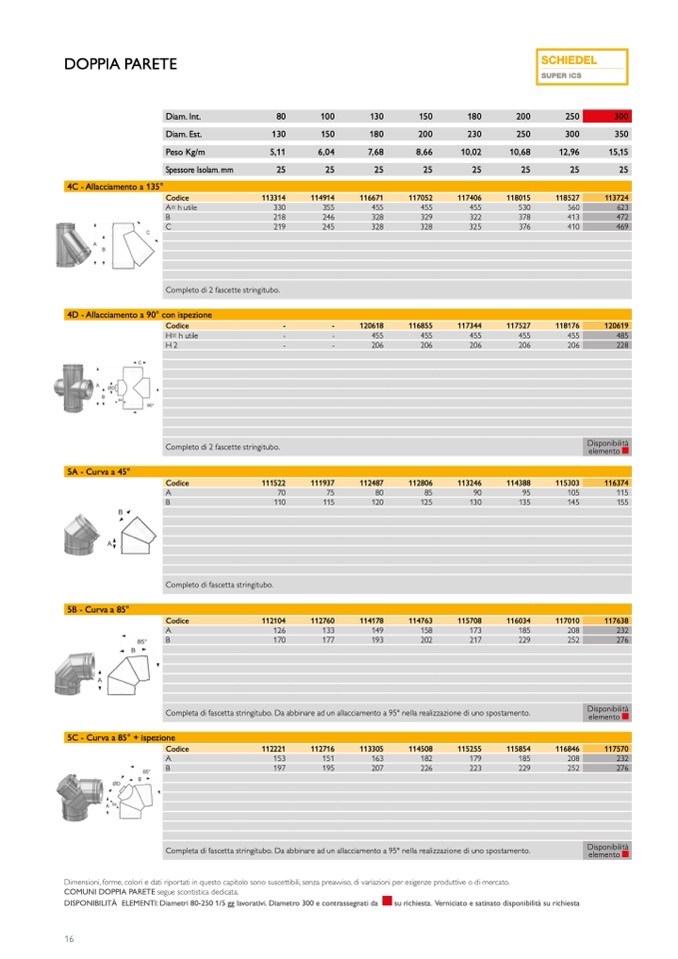 DISPONIBILITÀ ELEMENTI: Diametri 80-250 1/5 gg lavorativi. Diametro 300 e contrassegnati da
