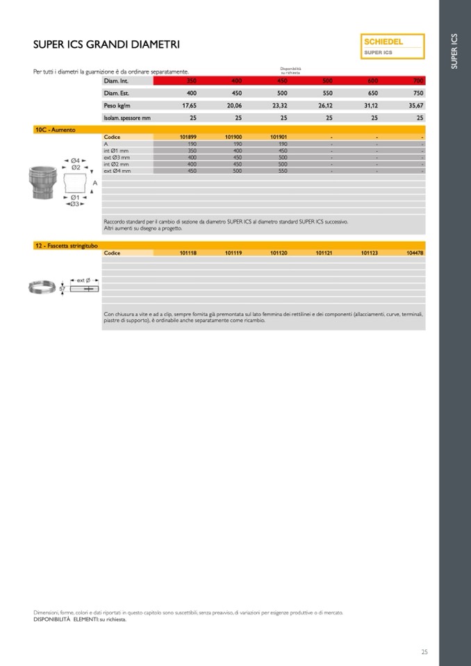 Raccordo standard per il cambio di sezione da diametro SUPER ICS al diametro standard SUPER ICS successivo.