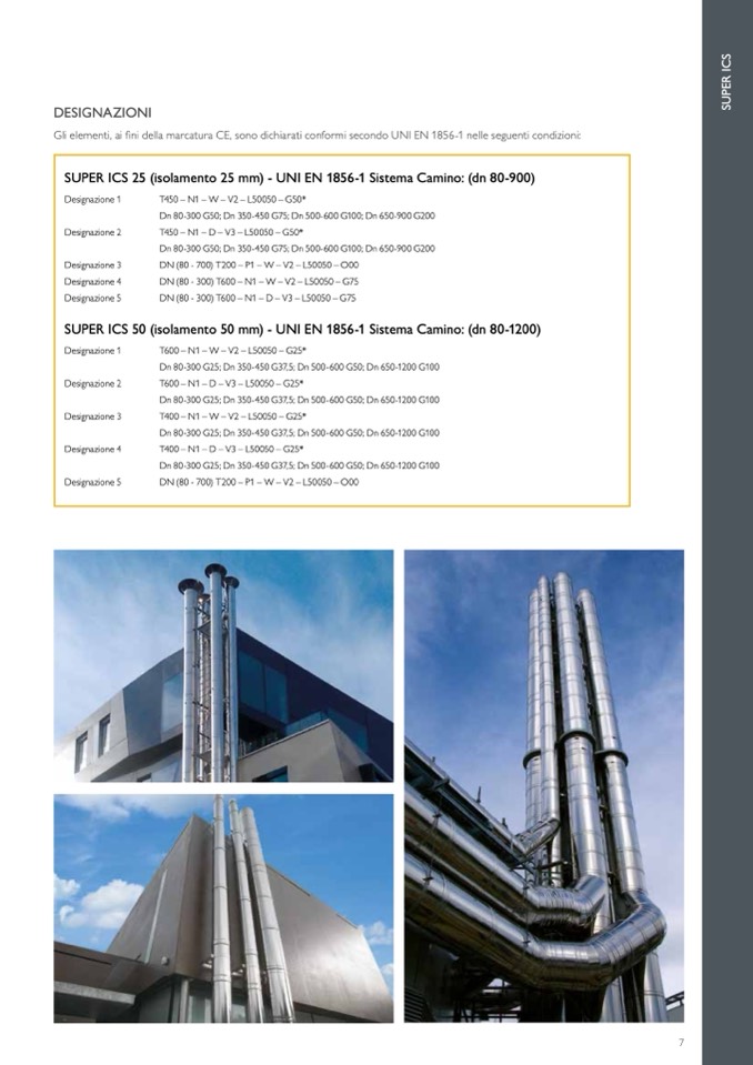 Gli elementi, ai fini della marcatura CE, sono dichiarati conformi secondo UNI EN 1856-1 nelle seguenti condizioni: