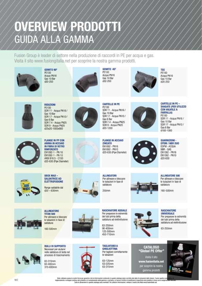 Tutte le dimensioni in questo catalogo sono nominali. Per ulteriori informazioni, visitare il nostro sito Web www.fusionitalia.net