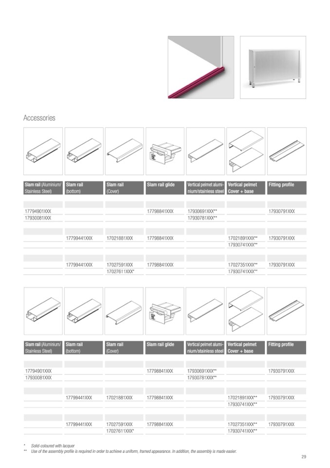 ** Use of the assembly profile is required in order to achieve a uniform, framed appearance. In addition, the assembly is made easier.