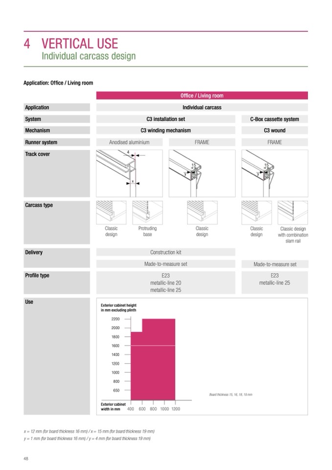 x = 12 mm (for board thickness 16 mm) / x = 15 mm (for board thickness 19 mm)