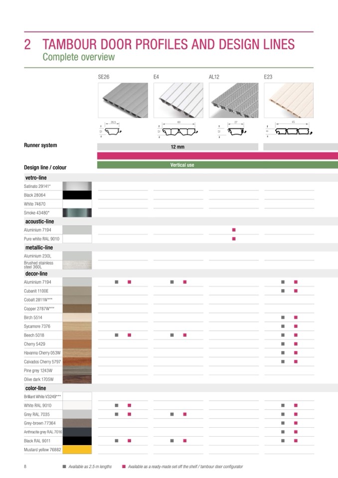 Available as a ready-made set off the shelf / tambour door configurator