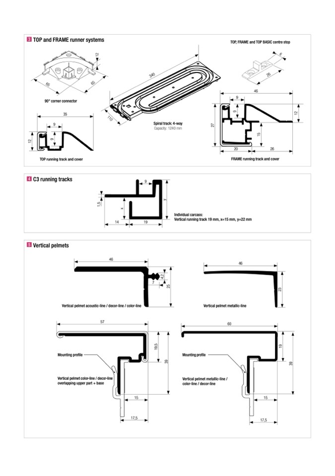 Vertical running track 19 mm, x=15 mm, y=22 mm