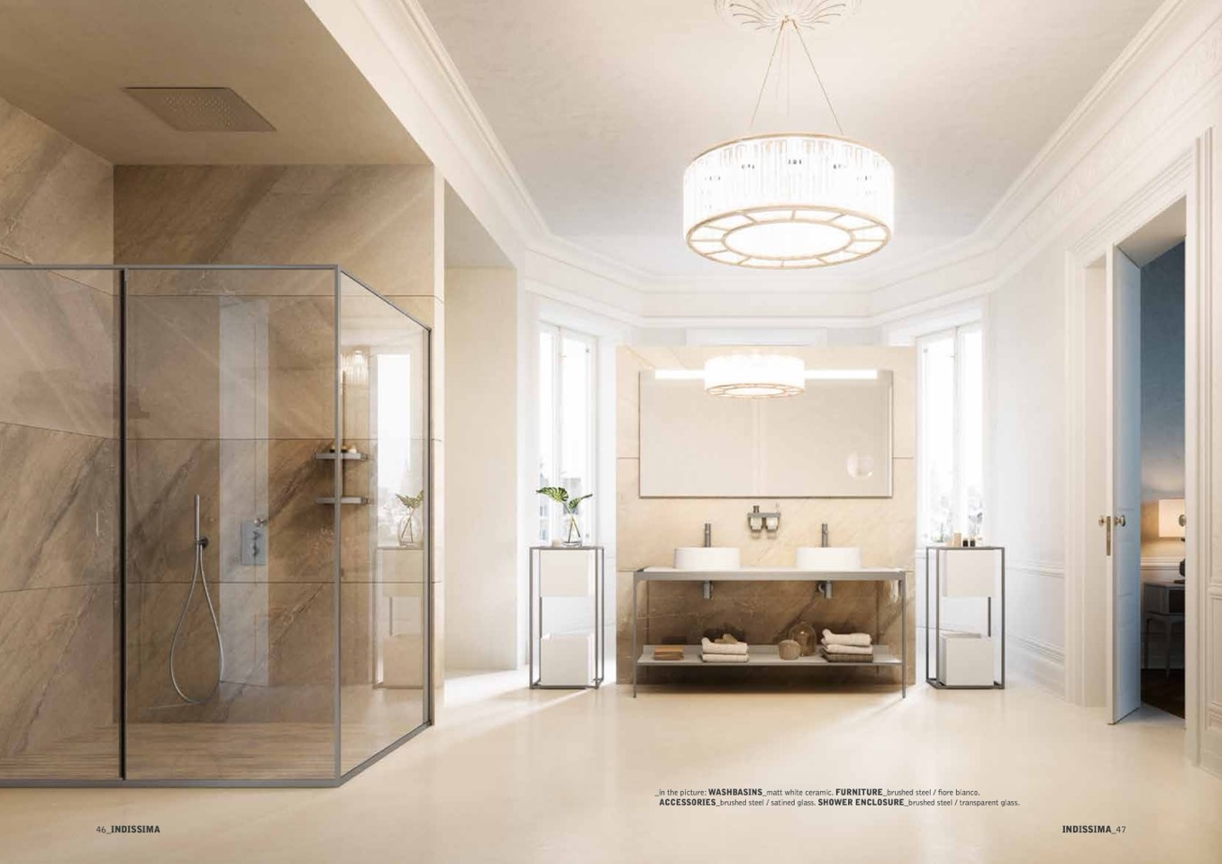 ACCESSORIES_brushed steel / satined glass. SHOWER ENCLOSURE_brushed steel / transparent glass.
