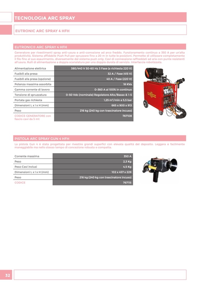 Generatore per rivestimenti spray anti-usura e anti-corrosione ad arco freddo. Funzionamento continuo a 350 A per un’alta