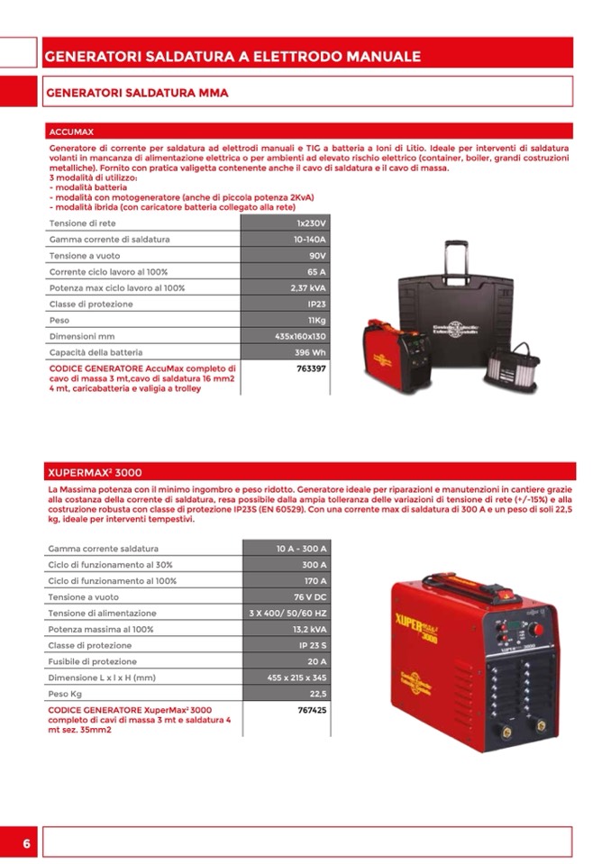metalliche). Fornito con pratica valigetta contenente anche il cavo di saldatura e il cavo di massa.