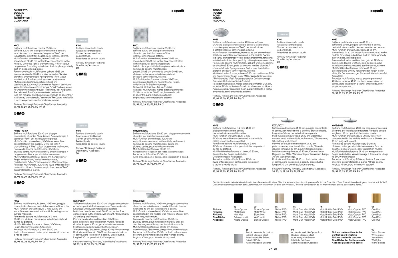 Per l’abbinamento dei miscelatori doccia fare riferimento al Listino. / For the shower mixers to pair, please refer to the Price List. / Pour l’association de mitigeurs douche, voir le Tarif.