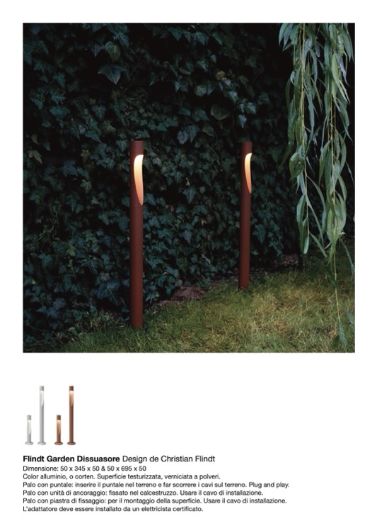 Palo con puntale: inserire il puntale nel terreno e far scorrere i cavi sul terreno. Plug and play.