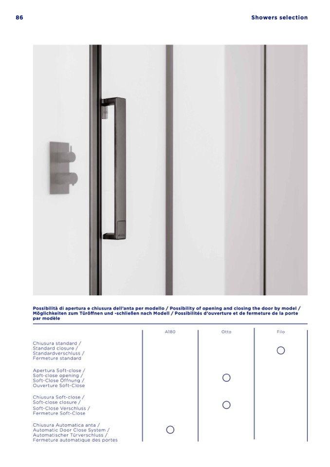 Possibilità di apertura e chiusura dell’anta per modello / Possibility of opening and closing the door by model