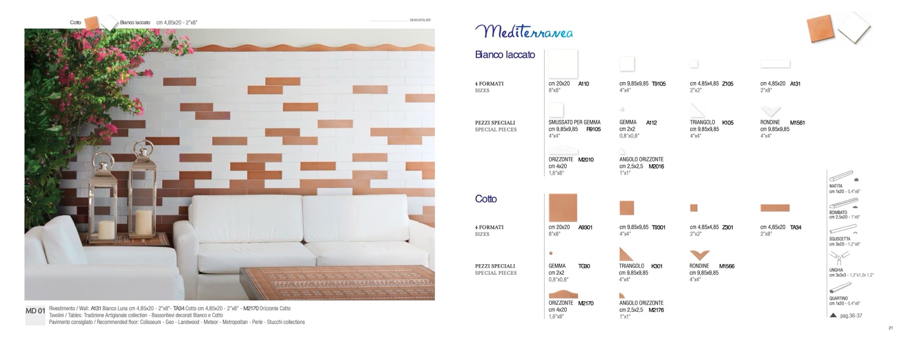 Rivestimento / Wall: A131 Bianco Luna cm 4,85x20 - 2”x8”- TA34 Cotto cm 4,85x20 - 2”x8” - M2170 Orizzonte Cotto