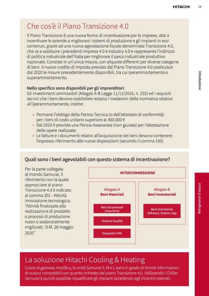 di output compatibili con quanto richiesto dal piano Transizione 4.0. Utilizzando i Chiller