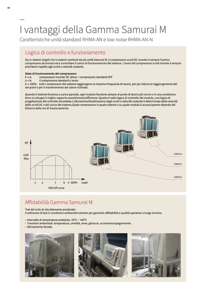 Sia in sistemi singoli che in sistemi costituiti da più unità Samurai M, il compressore scroll DC inverter è sempre il primo