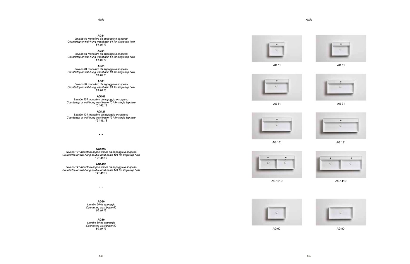 Lavabo 141 monoforo doppia vasca da appoggio o sospeso