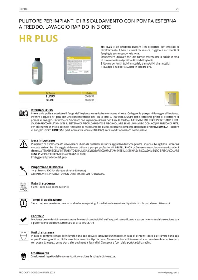 Proporzione di miscela: 1% (1lt di HR plus su 100lt d’acqua di riscaldamento).