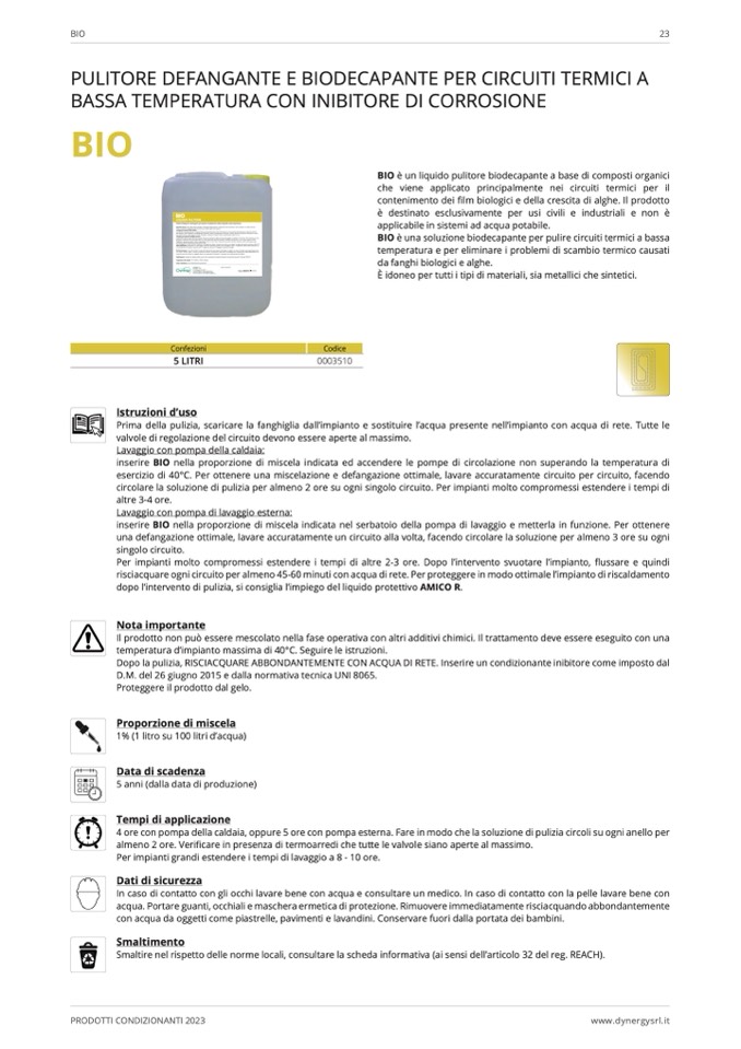 BIO è una soluzione biodecapante per pulire circuiti termici a bassa