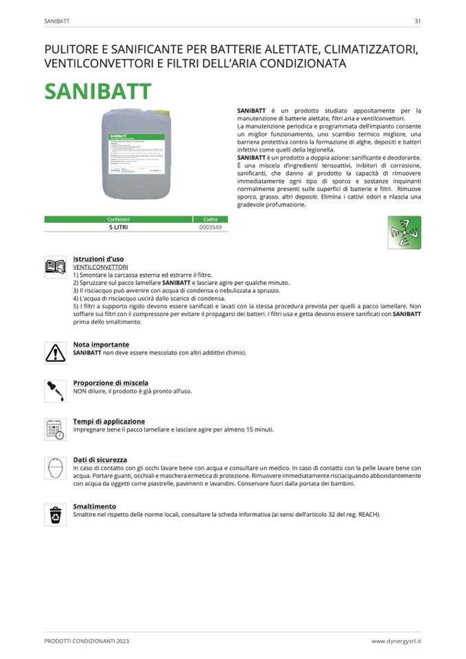 sui filtri con il compressore per evitare il propagarsi dei batteri. I filtri usa e getta devono essere sanificati con SANIBATT prima dello