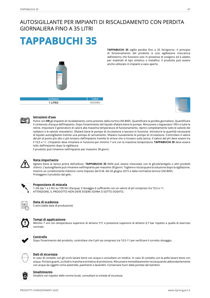 Agitare bene la tanica prima dell’utilizzo. TAPPABUCHI 35 NON pu