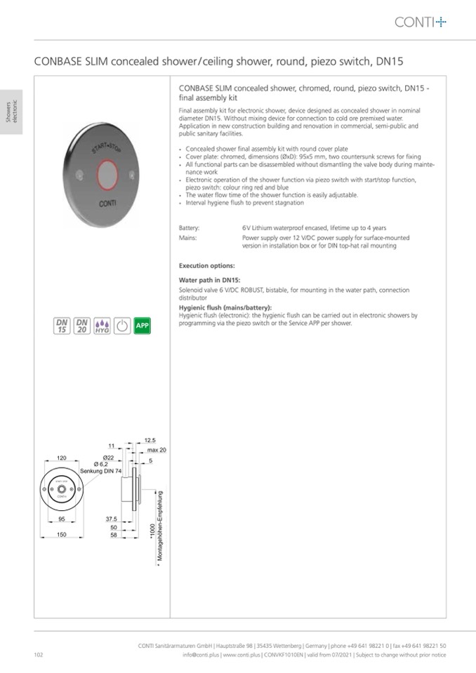 CONTI Sanitärarmaturen GmbH | Hauptstraße 98 | 35435 Wettenberg | Germany | phone +49 641 98221 0 | fax +49 641 98221 50