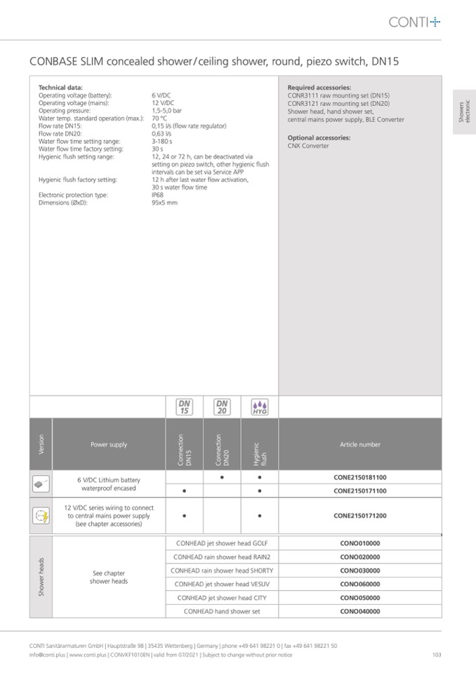 CONTI Sanitärarmaturen GmbH | Hauptstraße 98 | 35435 Wettenberg | Germany | phone +49 641 98221 0 | fax +49 641 98221 50