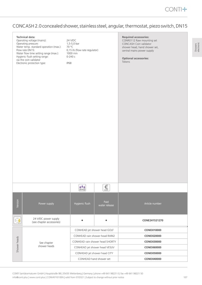CONTI Sanitärarmaturen GmbH | Hauptstraße 98 | 35435 Wettenberg | Germany | phone +49 641 98221 0 | fax +49 641 98221 50