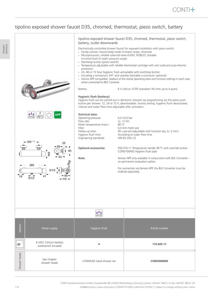 CONTI Sanitärarmaturen GmbH | Hauptstraße 98 | 35435 Wettenberg | Germany | phone +49 641 98221 0 | fax +49 641 98221 50