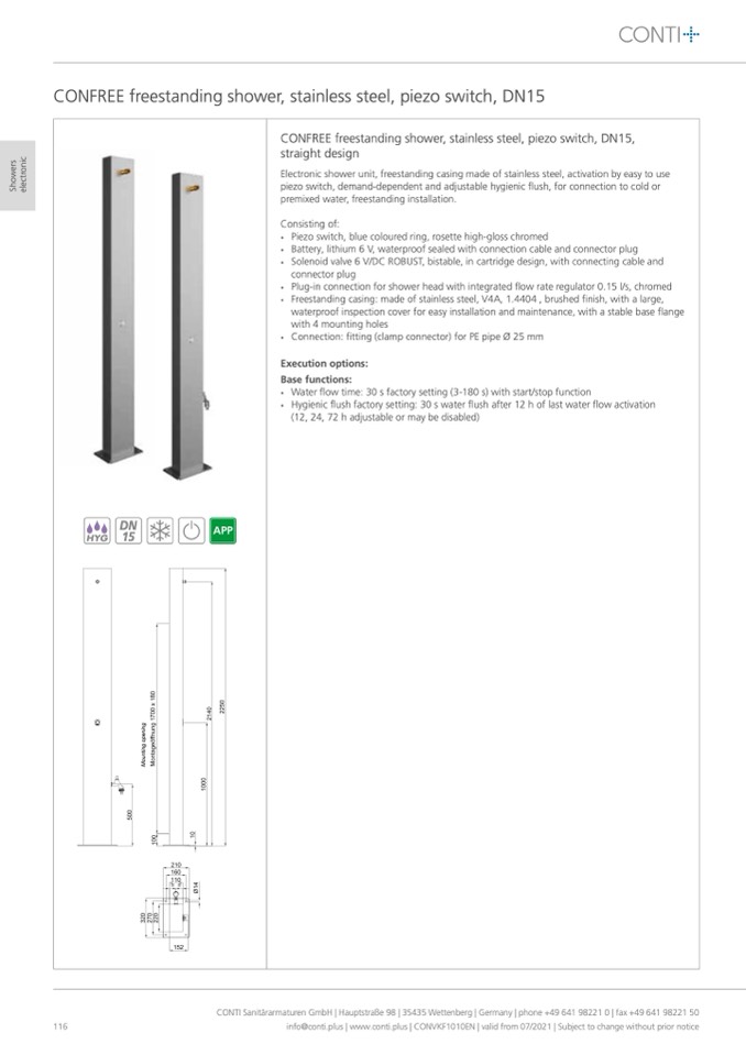 CONFREE freestanding shower, stainless steel, piezo switch, DN15,