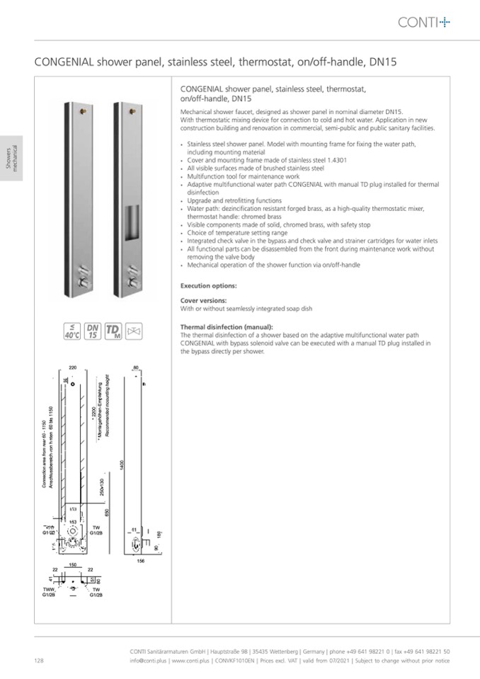 CONTI Sanitärarmaturen GmbH | Hauptstraße 98 | 35435 Wettenberg | Germany | phone +49 641 98221 0 | fax +49 641 98221 50