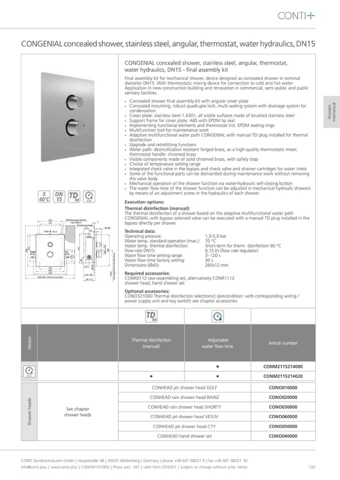 CONTI Sanitärarmaturen GmbH | Hauptstraße 98 | 35435 Wettenberg | Germany | phone +49 641 98221 0 | fax +49 641 98221 50
