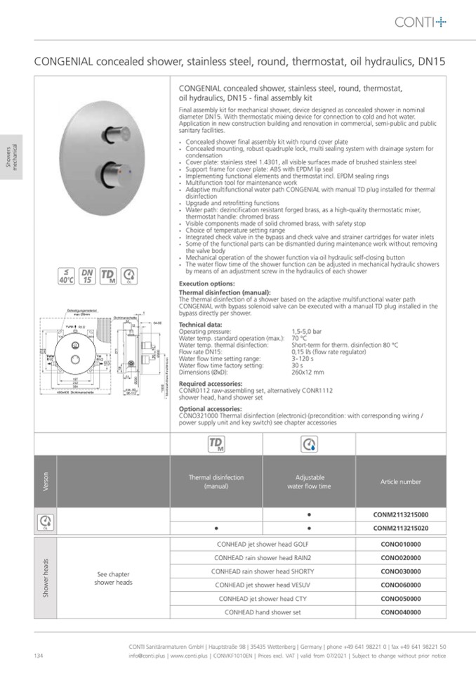 CONTI Sanitärarmaturen GmbH | Hauptstraße 98 | 35435 Wettenberg | Germany | phone +49 641 98221 0 | fax +49 641 98221 50