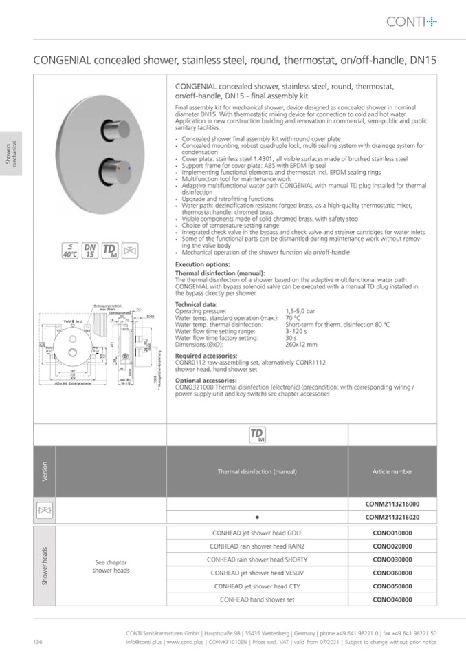 CONTI Sanitärarmaturen GmbH | Hauptstraße 98 | 35435 Wettenberg | Germany | phone +49 641 98221 0 | fax +49 641 98221 50